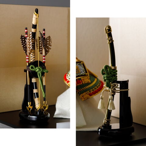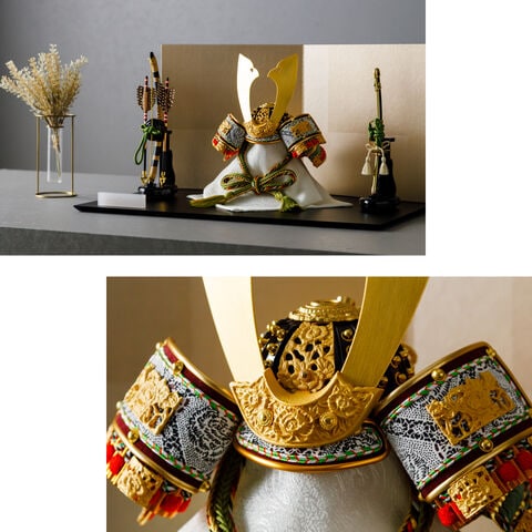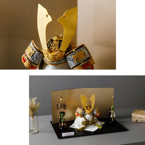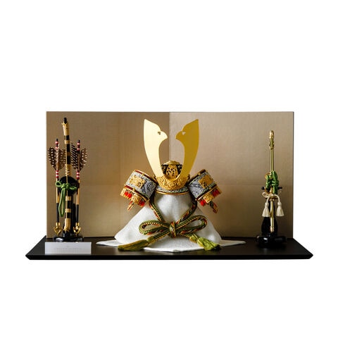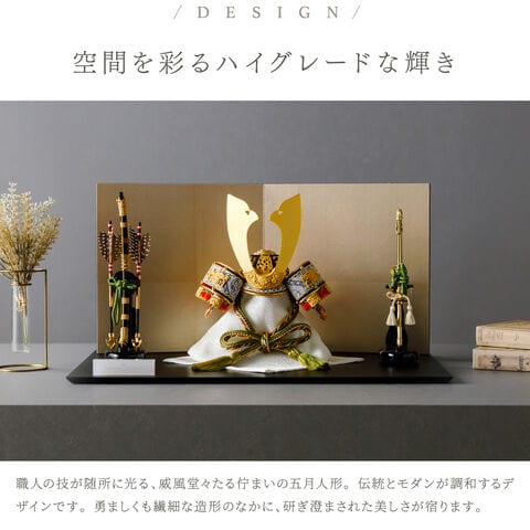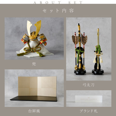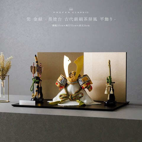 五月人形 おしゃれ 兜飾り 兜 モダン インテリア 高級 5月人形 PREFER CLASSIC 五月人形[黒塗台 古代銀絹茶屏風 平飾り 弓太刀 山代8号 金緑] 中鍬形