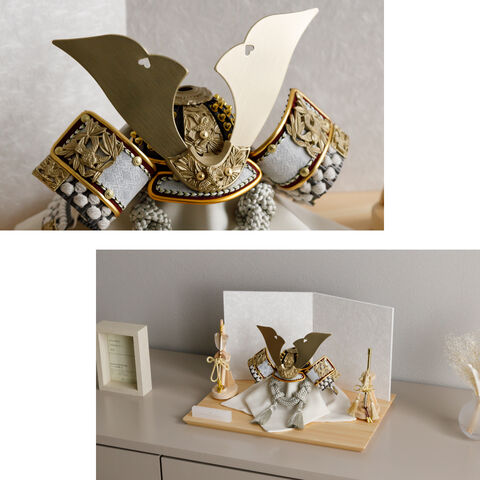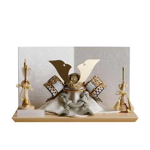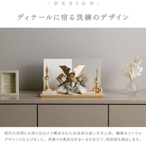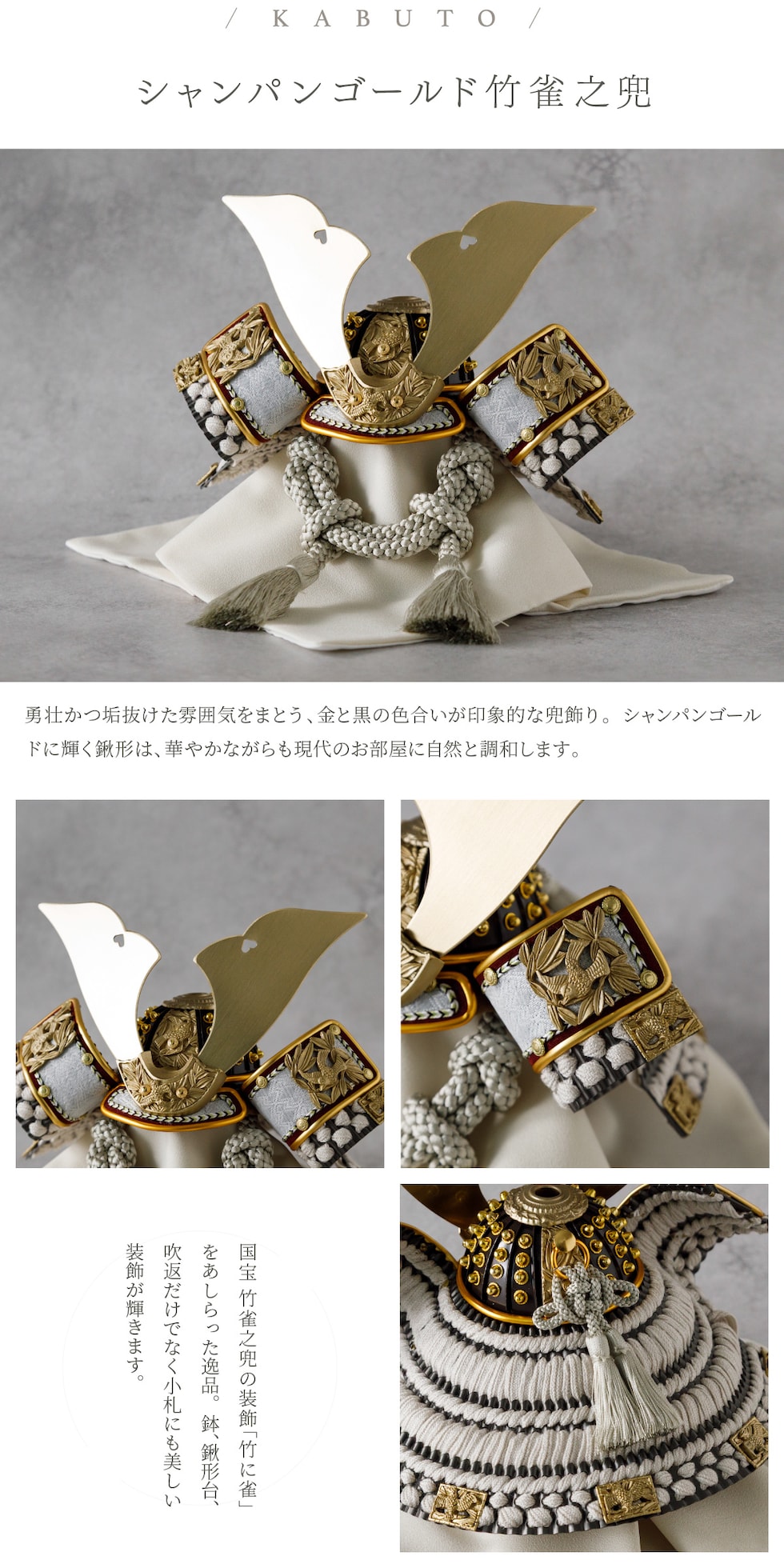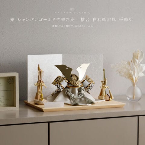 五月人形 おしゃれ 兜飾り 兜 モダン インテリア 高級 5月人形 PREFER CLASSIC 五月人形[檜台 白和紙屏風 平飾り 弓太刀 KIYO5号 シャンパンゴールド竹雀之兜] 大鍬形 オプション ケース 【ケースなし】