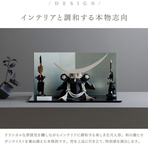 五月人形 おしゃれ 兜飾り 兜 モダン インテリア 高級 5月人形 PREFER CLASSIC 五月人形[黒塗台 古代銀絹青屏風 平飾り 弓太刀 黒龍8号 銀小札黒 伊達]