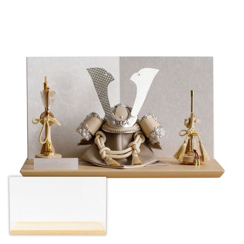 五月人形 おしゃれ 兜飾り 兜 モダン インテリア 高級 5月人形 PREFER CLASSIC 五月人形[檜台 白和紙屏風 平飾り 弓太刀 KIYO5号 金月 銀月 香色 黒鳶] 中鍬形 オプション ケース 【香色 ケース付属】