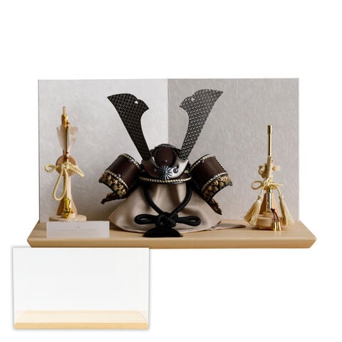 五月人形 おしゃれ 兜飾り 兜 モダン インテリア 高級 5月人形 PREFER CLASSIC 五月人形[檜台 白和紙屏風 平飾り 弓太刀 KIYO5号 金月 銀月 香色 黒鳶] 中鍬形 オプション ケース 【黒鳶 ケース付属】