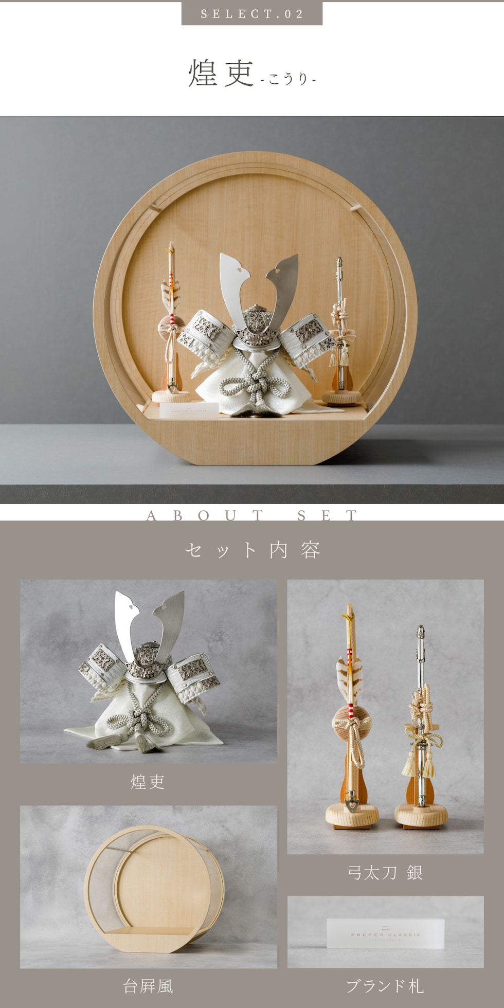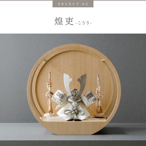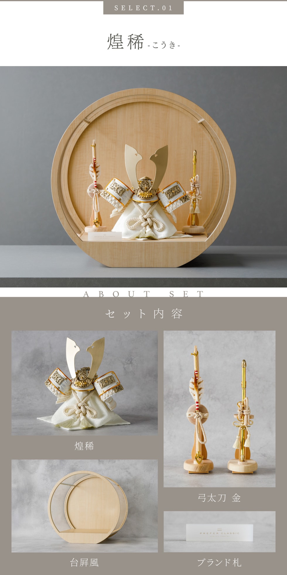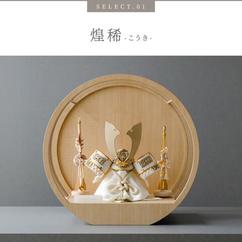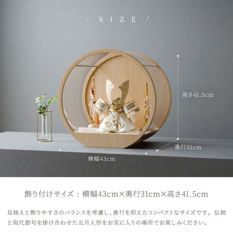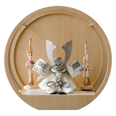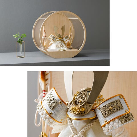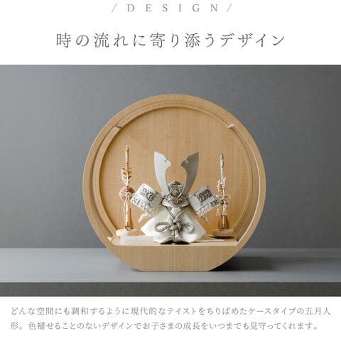 五月人形 ケース飾り おしゃれ 兜飾り 兜 モダン インテリア 高級 5月人形 PREFER CLASSIC 五月人形[木目調丸型ケース飾り 弓太刀 白珠8号 煌稀 煌吏] 中鍬形 【煌吏】