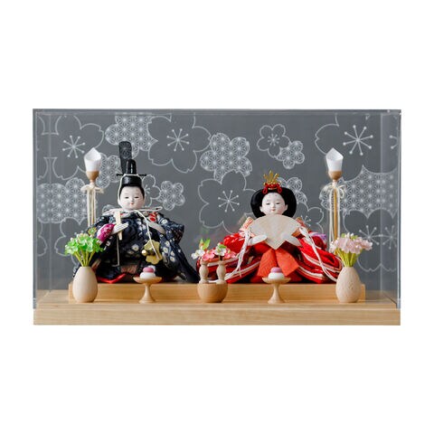 雛人形 コンパクト モダン ケース飾り 最新 親王飾り ふるうる SakuraLiru サクラリル 選べる衣裳とケース 【あゆり 背景デザイン入り】 おしゃれ インテリア ひな人形 おひなさま かわいい お雛様 今どき 木製