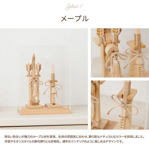 破魔弓 コンパクト おしゃれ ミニサイズ 正月飾り 男の子 prefer MOKU 破魔弓 アクリルケース飾り ナチュラル 選べるカラー2種 【メープル】 正月飾り ケース飾り 2026年 初正月 矢 弓 太刀