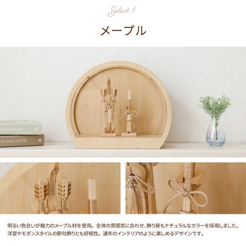 破魔弓 コンパクト おしゃれ 正月飾り 男の子 prefer MOKU 破魔弓 丸型ケース飾り ナチュラル 選べるカラー2種 【メープル】 正月飾り ケース飾り 2026年 初正月 矢 弓 太刀