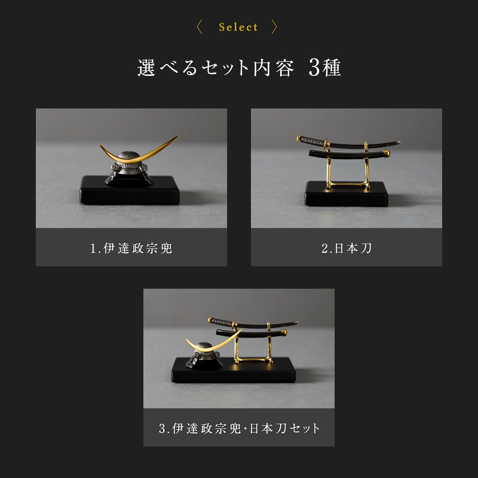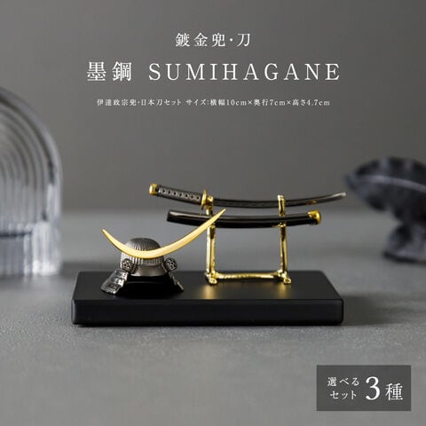 五月人形 コンパクト 兜 刀 おしゃれ 鍍金兜・刀 墨鋼 SUMIHAGANE 高級 シルバー silver925 選べるセット内容 3種類 伊達 日本刀 【日本刀】 贈答 ギフト プレゼント お祝 端午の節句 日本 土産 本格