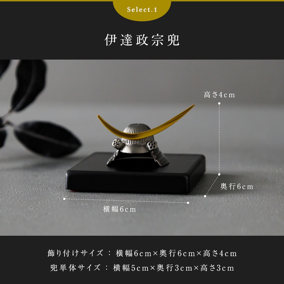 1.伊達政宗兜:横幅6cm×奥行6cm×高さ4cm