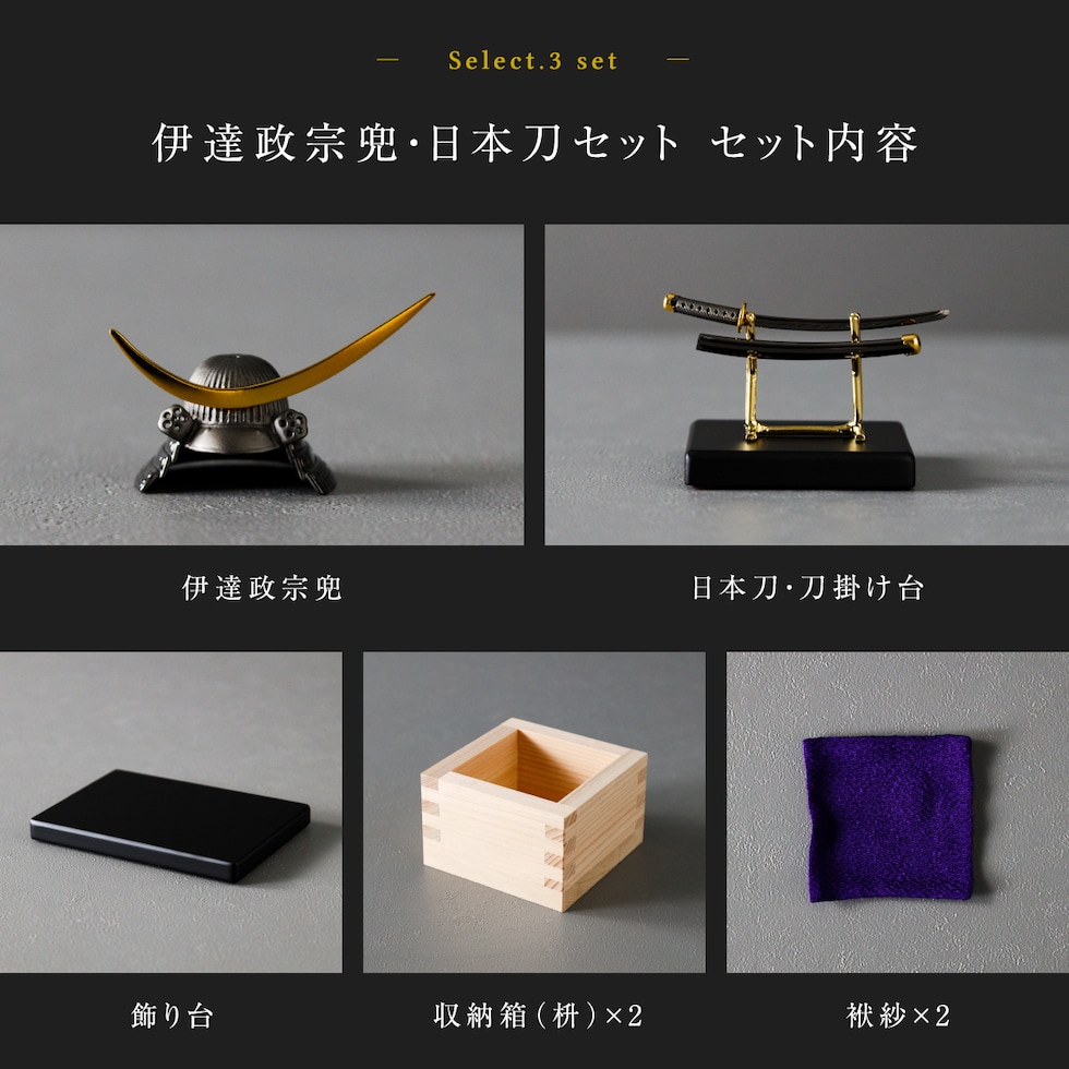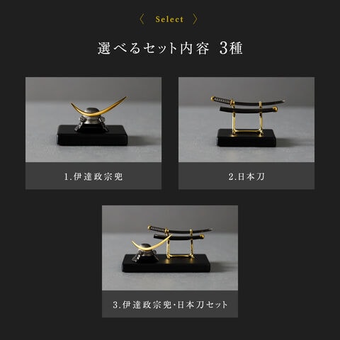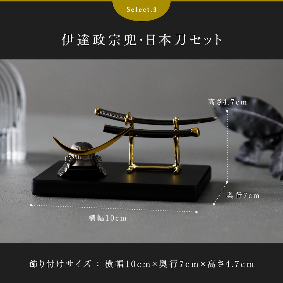 3.伊達政宗兜・日本刀セット:横幅10cm×奥行7cm×高さ4.7cm