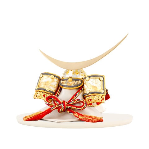 五月人形 コンパクト おしゃれ 兜飾り モダン インテリア ぷりふあ五月人形 ISSEN 半月 兜12種類 飾り台5種類 【9.伊達金-DATEKIN- 3.木目調ホワイト】 5月人形 初節句 男の子 兜 子供の日