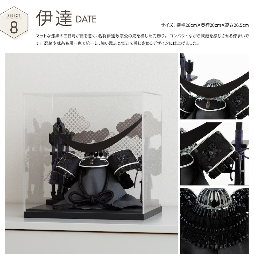 五月人形 コンパクト おしゃれ ケース飾り 兜 モダン 5月人形 最新 今どき 兜飾り ROITOKA アクリルケース飾り YUKUMO 選べる7種類 男の子 初節句 木製 【上杉-UESUGI-】 端午の節句 こどもの日 初節句 インテリア モダン