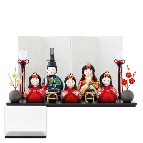 雛人形 おしゃれ コンパクト モダン かわいい インテリア 木目込み ぷりふあ ちとせ -ブラック- Mサイズ 平飾り ケース飾り 五人飾り 【小豆・べに 屏風わた・ケース付属】 雛 お雛様 おひなさま 木目込人形飾り 最新 今どき