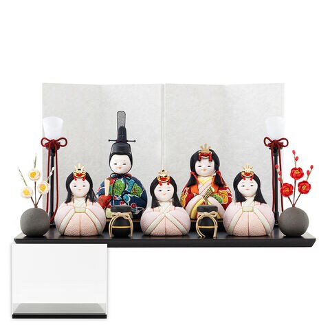 雛人形 おしゃれ コンパクト モダン かわいい インテリア 木目込み ぷりふあ ちとせ -ブラック- Mサイズ 平飾り ケース飾り 五人飾り 【小豆・あさ 屏風わた・ケース付属】 雛 お雛様 おひなさま 木目込人形飾り 最新 今どき