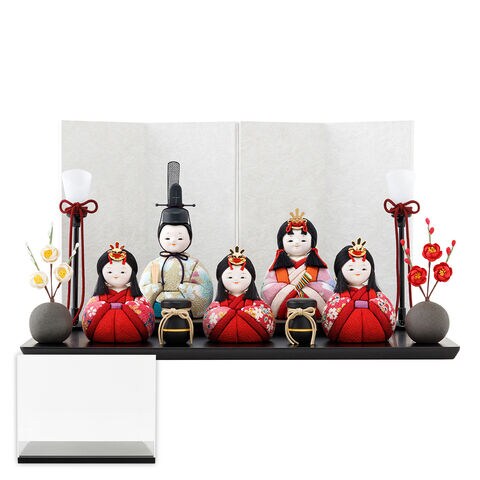雛人形 おしゃれ コンパクト モダン かわいい インテリア 木目込み ぷりふあ ちとせ -ブラック- Mサイズ 平飾り ケース飾り 五人飾り 【萌笑・べに 屏風わた・ケース付属】 雛 お雛様 おひなさま 木目込人形飾り 最新 今どき