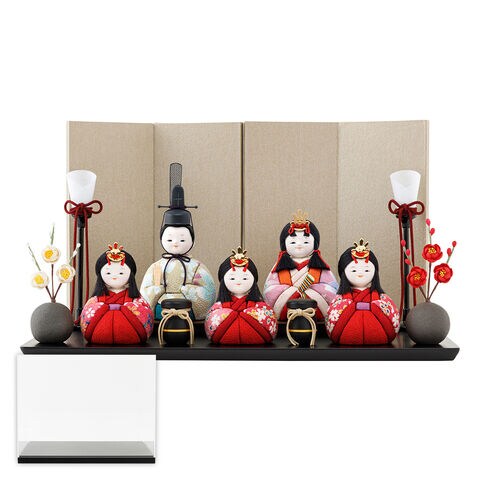 雛人形 おしゃれ コンパクト モダン かわいい インテリア 木目込み ぷりふあ ちとせ -ブラック- Mサイズ 平飾り ケース飾り 五人飾り 【萌笑・べに 屏風きん・ケース付属】 雛 お雛様 おひなさま 木目込人形飾り 最新 今どき