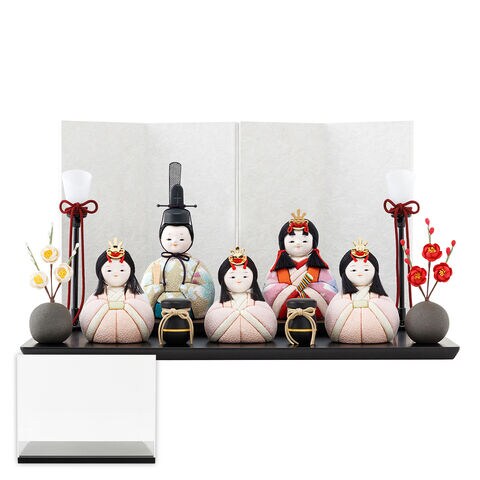 雛人形 おしゃれ コンパクト モダン かわいい インテリア 木目込み ぷりふあ ちとせ -ブラック- Mサイズ 平飾り ケース飾り 五人飾り 【萌笑・あさ 屏風わた・ケース付属】 雛 お雛様 おひなさま 木目込人形飾り 最新 今どき