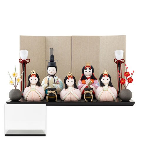 雛人形 おしゃれ コンパクト モダン かわいい インテリア 木目込み ぷりふあ ちとせ -ブラック- Mサイズ 平飾り ケース飾り 五人飾り 【萌笑・あさ 屏風きん・ケース付属】 雛 お雛様 おひなさま 木目込人形飾り 最新 今どき