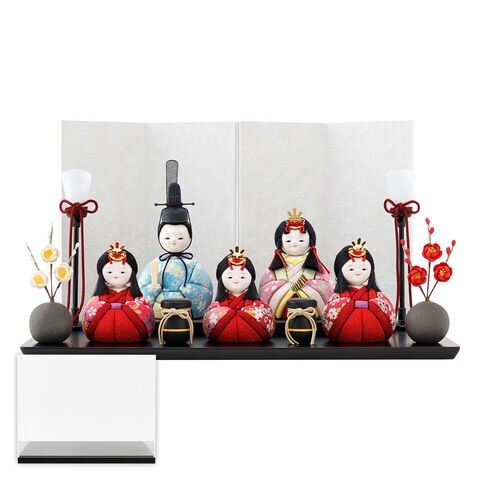 雛人形 おしゃれ コンパクト モダン かわいい インテリア 木目込み ぷりふあ ちとせ -ブラック- Mサイズ 平飾り ケース飾り 五人飾り 【桜実・べに 屏風わた・ケース付属】 雛 お雛様 おひなさま 木目込人形飾り 最新 今どき