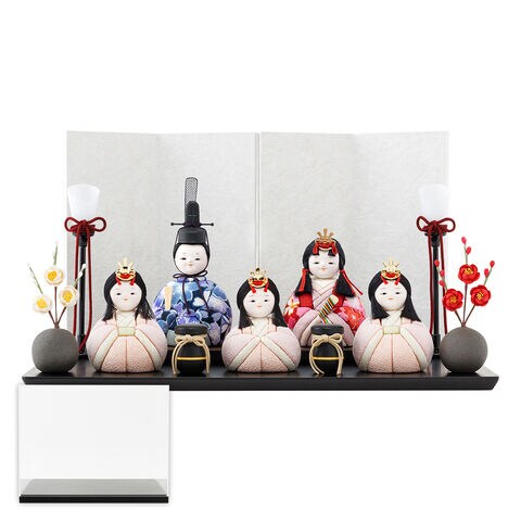 雛人形 おしゃれ コンパクト モダン かわいい インテリア 木目込み ぷりふあ ちとせ -ブラック- Mサイズ 平飾り ケース飾り 五人飾り 【胡桃・あさ 屏風わた・ケース付属】 雛 お雛様 おひなさま 木目込人形飾り 最新 今どき