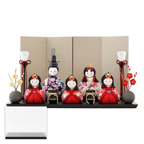 雛人形 おしゃれ コンパクト モダン かわいい インテリア 木目込み ぷりふあ ちとせ -ブラック- Mサイズ 平飾り ケース飾り 五人飾り 【咲歩・べに 屏風きん・ケース付属】 雛 お雛様 おひなさま 木目込人形飾り 最新 今どき