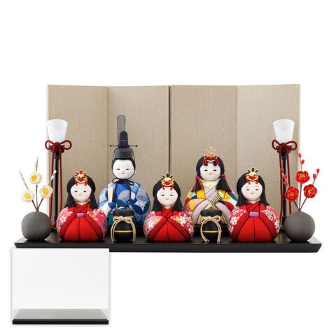 雛人形 おしゃれ コンパクト モダン かわいい インテリア 木目込み ぷりふあ ちとせ -ブラック- Mサイズ 平飾り ケース飾り 五人飾り 【七宝・べに 屏風きん・ケース付属】 雛 お雛様 おひなさま 木目込人形飾り 最新 今どき