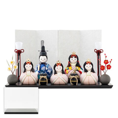 雛人形 おしゃれ コンパクト モダン かわいい インテリア 木目込み ぷりふあ ちとせ -ブラック- Mサイズ 平飾り ケース飾り 五人飾り 【七宝・あさ 屏風わた・ケース付属】 雛 お雛様 おひなさま 木目込人形飾り 最新 今どき