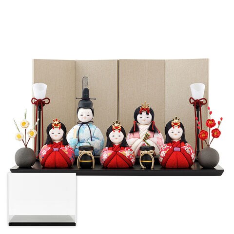 雛人形 おしゃれ コンパクト モダン かわいい インテリア 木目込み ぷりふあ ちとせ -ブラック- Mサイズ 平飾り ケース飾り 五人飾り 【水彩・べに 屏風きん・ケース付属】 雛 お雛様 おひなさま 木目込人形飾り 最新 今どき