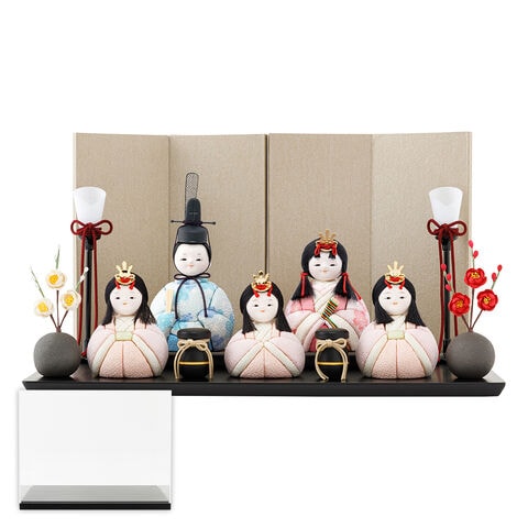 雛人形 おしゃれ コンパクト モダン かわいい インテリア 木目込み ぷりふあ ちとせ -ブラック- Mサイズ 平飾り ケース飾り 五人飾り 【水彩・あさ 屏風きん・ケース付属】 雛 お雛様 おひなさま 木目込人形飾り 最新 今どき