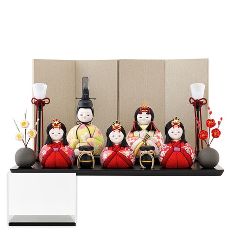 雛人形 おしゃれ コンパクト モダン かわいい インテリア 木目込み ぷりふあ ちとせ -ブラック- Mサイズ 平飾り ケース飾り 五人飾り 【乃々・べに 屏風きん・ケース付属】 雛 お雛様 おひなさま 木目込人形飾り 最新 今どき