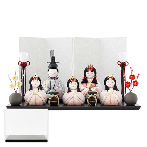 雛人形 おしゃれ コンパクト モダン かわいい インテリア 木目込み ぷりふあ ちとせ -ブラック- Mサイズ 平飾り ケース飾り 五人飾り 【瑠莉・あさ 屏風わた・ケース付属】 雛 お雛様 おひなさま 木目込人形飾り 最新 今どき