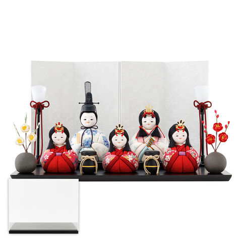 雛人形 おしゃれ コンパクト モダン かわいい インテリア 木目込み ぷりふあ ちとせ -ブラック- Mサイズ 平飾り ケース飾り 五人飾り 【紫陽・べに 屏風わた・ケース付属】 雛 お雛様 おひなさま 木目込人形飾り 最新 今どき