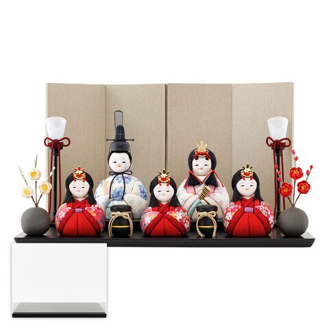 雛人形 おしゃれ コンパクト モダン かわいい インテリア 木目込み ぷりふあ ちとせ -ブラック- Mサイズ 平飾り ケース飾り 五人飾り 【紫陽・べに 屏風きん・ケース付属】 雛 お雛様 おひなさま 木目込人形飾り 最新 今どき
