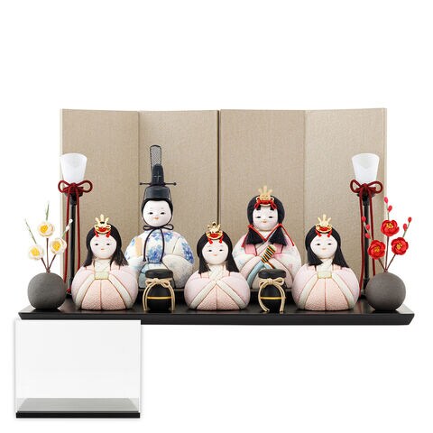 雛人形 おしゃれ コンパクト モダン かわいい インテリア 木目込み ぷりふあ ちとせ -ブラック- Mサイズ 平飾り ケース飾り 五人飾り 【紫陽・あさ 屏風きん・ケース付属】 雛 お雛様 おひなさま 木目込人形飾り 最新 今どき