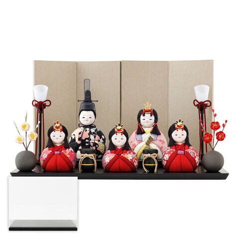 雛人形 おしゃれ コンパクト モダン かわいい インテリア 木目込み ぷりふあ ちとせ -ブラック- Mサイズ 平飾り ケース飾り 五人飾り 【希依・べに 屏風きん・ケース付属】 雛 お雛様 おひなさま 木目込人形飾り 最新 今どき