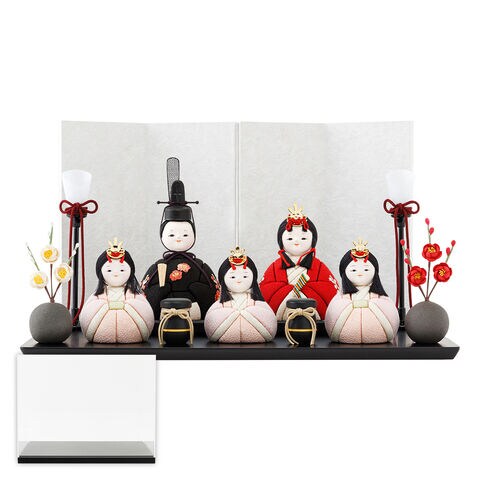 雛人形 おしゃれ コンパクト モダン かわいい インテリア 木目込み ぷりふあ ちとせ -ブラック- Mサイズ 平飾り ケース飾り 五人飾り 【由梅・あさ 屏風わた・ケース付属】 雛 お雛様 おひなさま 木目込人形飾り 最新 今どき
