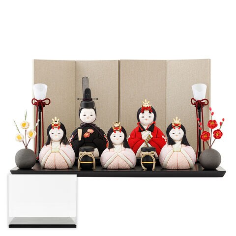 雛人形 おしゃれ コンパクト モダン かわいい インテリア 木目込み ぷりふあ ちとせ -ブラック- Mサイズ 平飾り ケース飾り 五人飾り 【由梅・あさ 屏風きん・ケース付属】 雛 お雛様 おひなさま 木目込人形飾り 最新 今どき