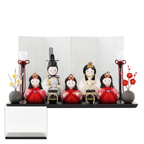 雛人形 おしゃれ コンパクト モダン かわいい インテリア 木目込み ぷりふあ ちとせ -ブラック- Mサイズ 平飾り ケース飾り 五人飾り 【茉桜・べに 屏風わた・ケース付属】 雛 お雛様 おひなさま 木目込人形飾り 最新 今どき