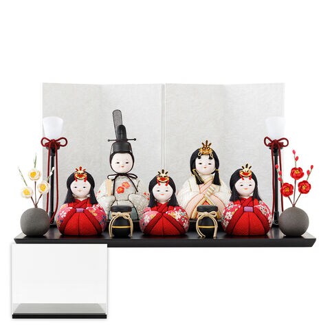 雛人形 おしゃれ コンパクト モダン かわいい インテリア 木目込み ぷりふあ ちとせ -ブラック- Mサイズ 平飾り ケース飾り 五人飾り 【志乃・べに 屏風わた・ケース付属】 雛 お雛様 おひなさま 木目込人形飾り 最新 今どき