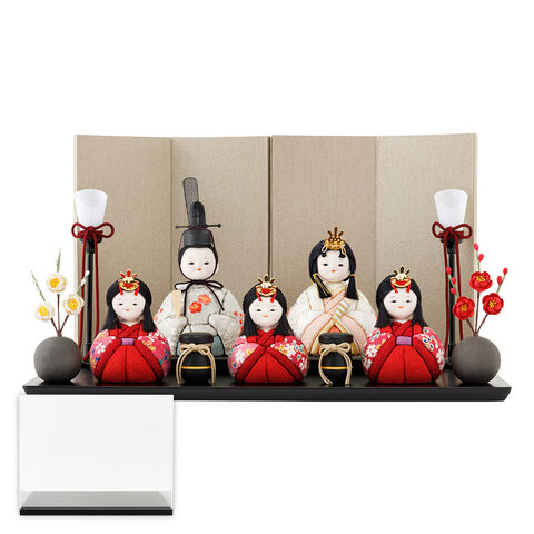 雛人形 おしゃれ コンパクト モダン かわいい インテリア 木目込み ぷりふあ ちとせ -ブラック- Mサイズ 平飾り ケース飾り 五人飾り 【志乃・べに 屏風きん・ケース付属】 雛 お雛様 おひなさま 木目込人形飾り 最新 今どき