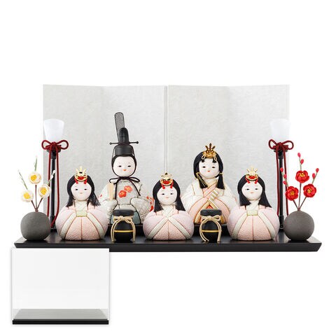 雛人形 おしゃれ コンパクト モダン かわいい インテリア 木目込み ぷりふあ ちとせ -ブラック- Mサイズ 平飾り ケース飾り 五人飾り 【志乃・あさ 屏風わた・ケース付属】 雛 お雛様 おひなさま 木目込人形飾り 最新 今どき