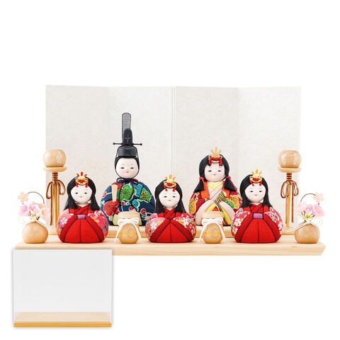 雛人形 おしゃれ コンパクト モダン かわいい 最新 雛 木目込み ぷりふあ ちとせ -ナチュラル- Mサイズ 平飾り ケース飾り 五人飾り 【小豆・べに ケース付属】 インテリア お雛様 おひなさま 木目込人形飾り 今どき