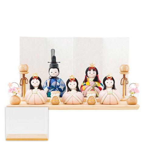 雛人形 おしゃれ コンパクト モダン かわいい 最新 雛 木目込み ぷりふあ ちとせ -ナチュラル- Mサイズ 平飾り ケース飾り 五人飾り 【七宝・あさ ケース付属】 インテリア お雛様 おひなさま 木目込人形飾り 今どき