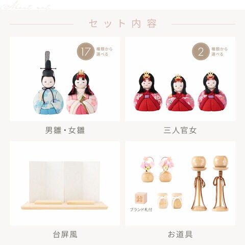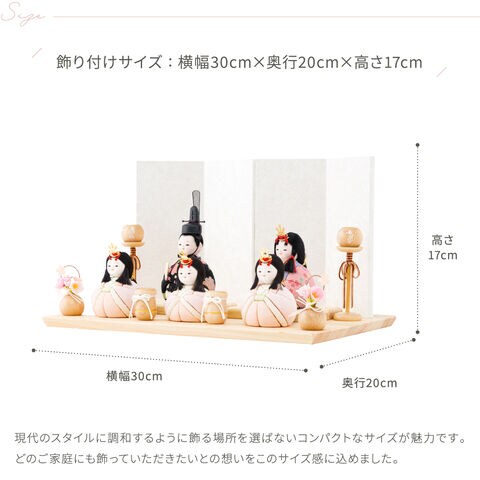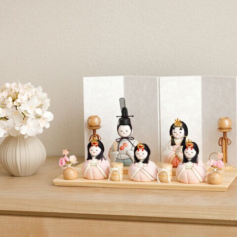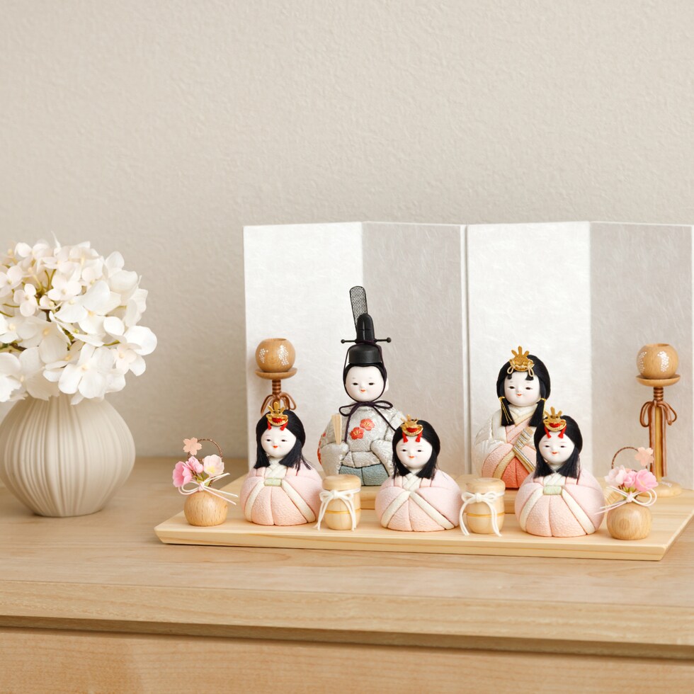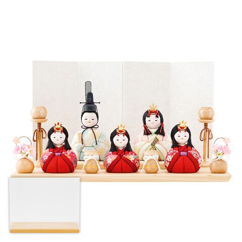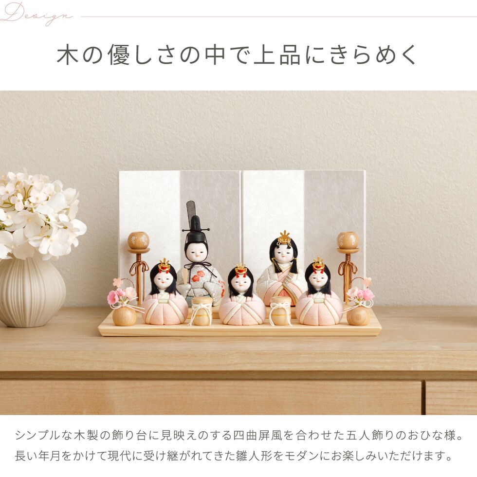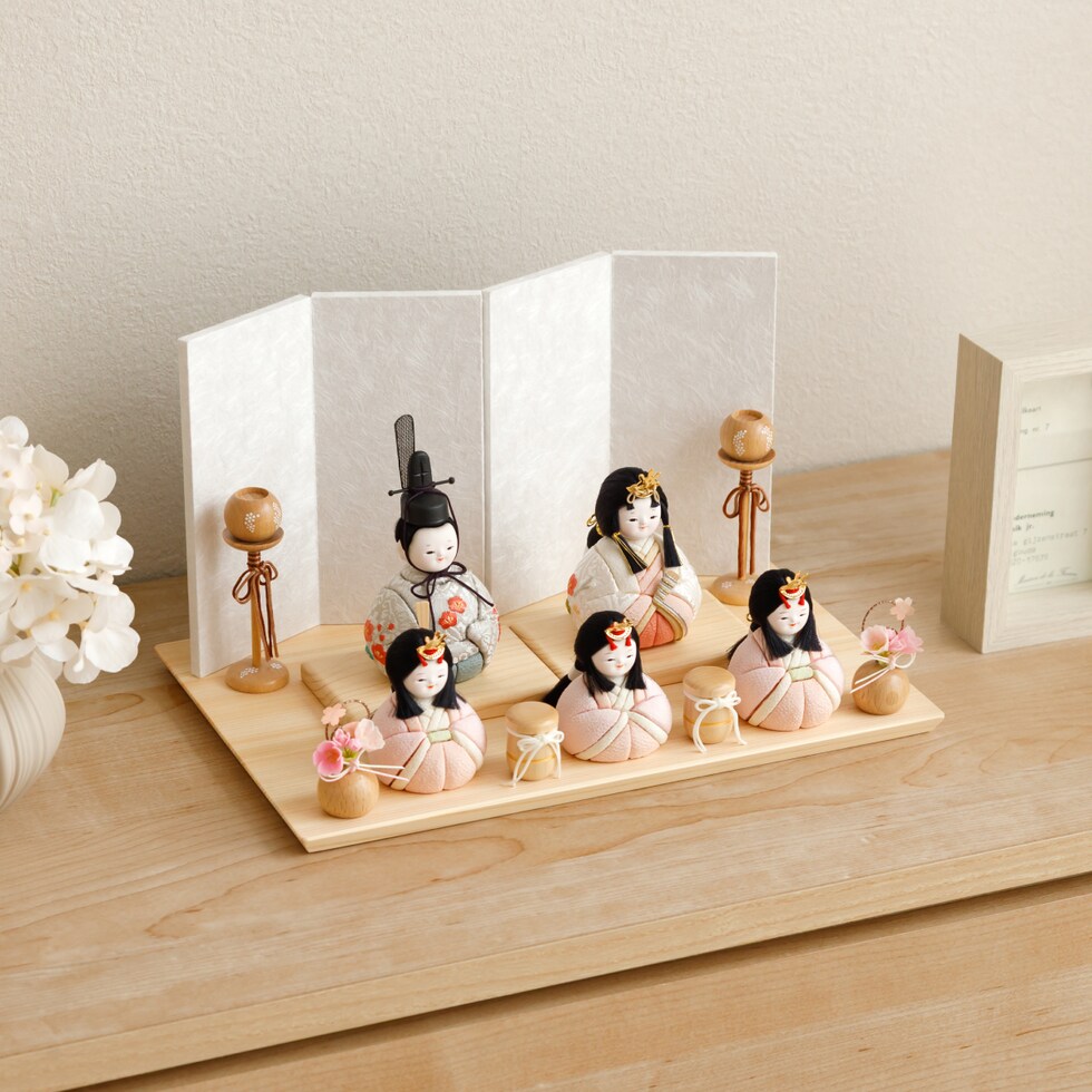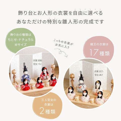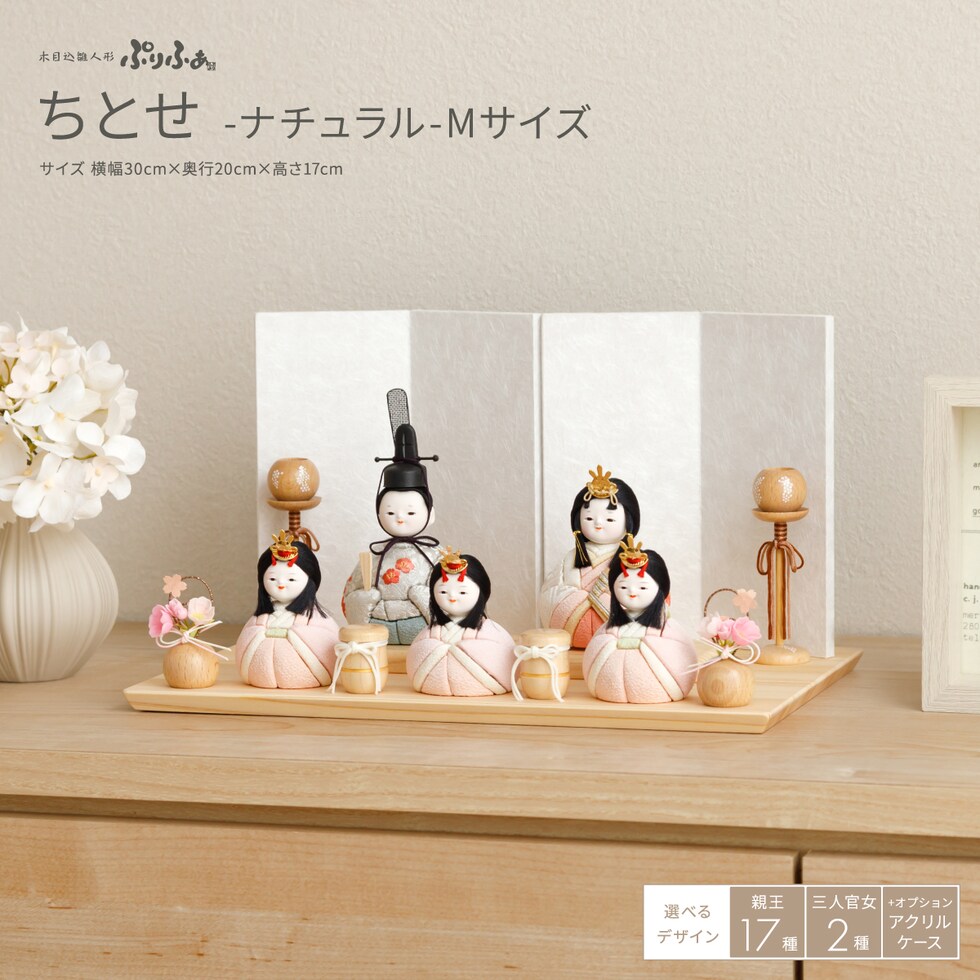 雛人形 おしゃれ コンパクト モダン かわいい 最新 雛 木目込み ぷりふあ ちとせ -ナチュラル- Mサイズ 平飾り ケース飾り 五人飾り 【風羽・べに ケース付属】 インテリア お雛様 おひなさま 木目込人形飾り 今どき