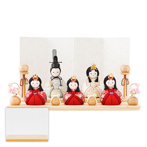 雛人形 おしゃれ コンパクト モダン かわいい 最新 雛 木目込み ぷりふあ ちとせ -ナチュラル- Mサイズ 平飾り ケース飾り 五人飾り 【茉桜・べに ケース付属】 インテリア お雛様 おひなさま 木目込人形飾り 今どき