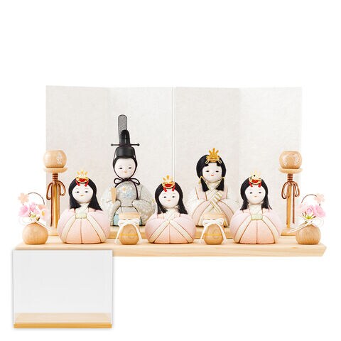 雛人形 おしゃれ コンパクト モダン かわいい 最新 雛 木目込み ぷりふあ ちとせ -ナチュラル- Mサイズ 平飾り ケース飾り 五人飾り 【茉桜・あさ ケース付属】 インテリア お雛様 おひなさま 木目込人形飾り 今どき