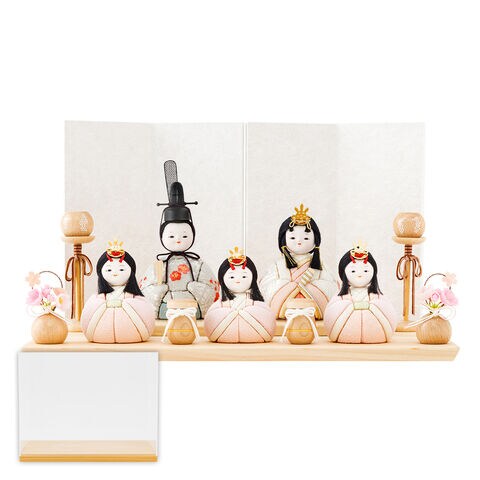雛人形 おしゃれ コンパクト モダン かわいい 最新 雛 木目込み ぷりふあ ちとせ -ナチュラル- Mサイズ 平飾り ケース飾り 五人飾り 【志乃・あさ ケース付属】 インテリア お雛様 おひなさま 木目込人形飾り 今どき