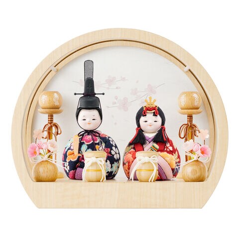 雛人形 ケース飾り コンパクト おしゃれ インテリア 雛 丸型 木目込み ぷりふあ 月ノ時 ミニサイズ 親王飾り かわいい 最新 【三葉】 ひな人形 モダン お雛様 おひなさま 今どき