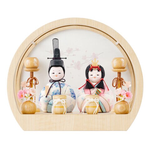 雛人形 ケース飾り コンパクト おしゃれ インテリア 雛 丸型 木目込み ぷりふあ 月ノ時 ミニサイズ 親王飾り かわいい 最新 【紫陽】 ひな人形 モダン お雛様 おひなさま 今どき