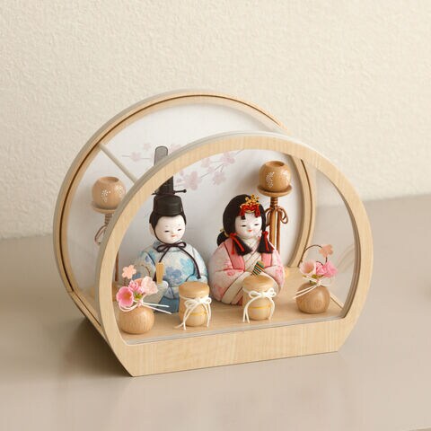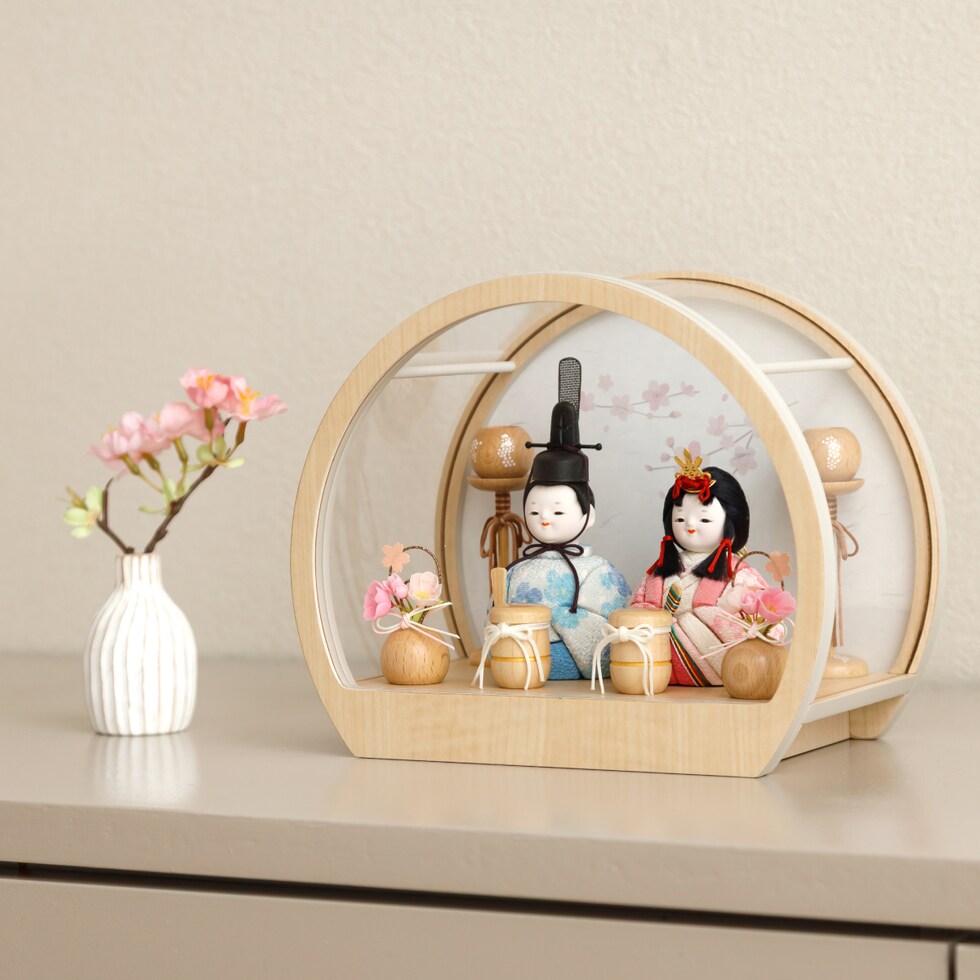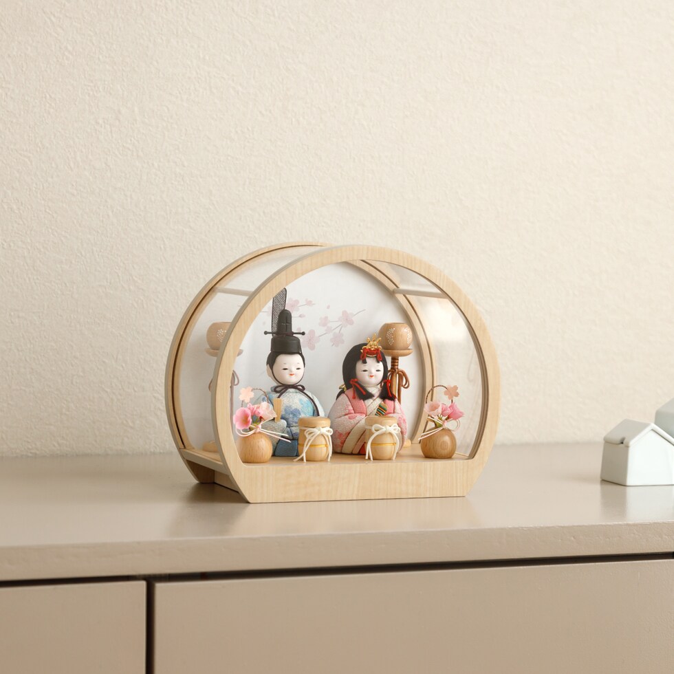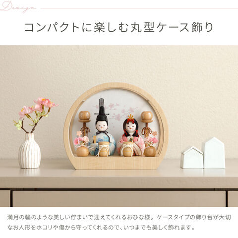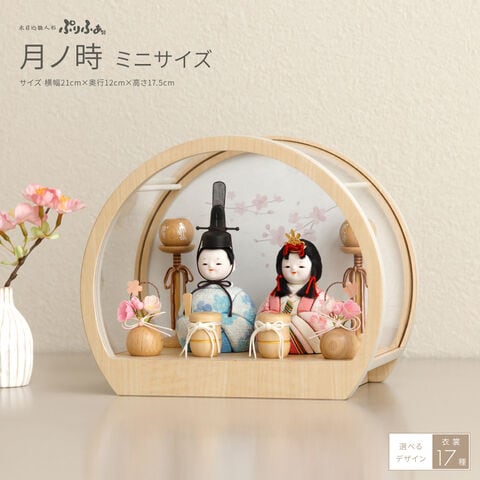 雛人形 ケース飾り コンパクト おしゃれ インテリア 雛 丸型 木目込み ぷりふあ 月ノ時 ミニサイズ 親王飾り かわいい 最新 【風羽】 ひな人形 モダン お雛様 おひなさま 今どき