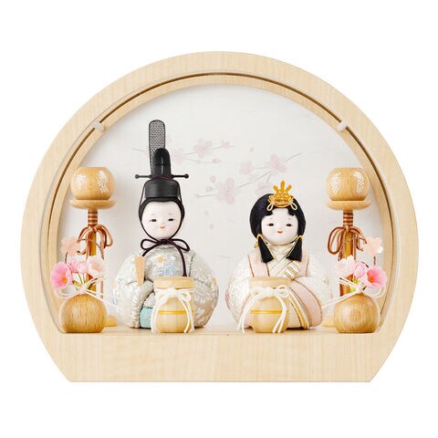 雛人形 ケース飾り コンパクト おしゃれ インテリア 雛 丸型 木目込み ぷりふあ 月ノ時 ミニサイズ 親王飾り かわいい 最新 【茉桜】 ひな人形 モダン お雛様 おひなさま 今どき