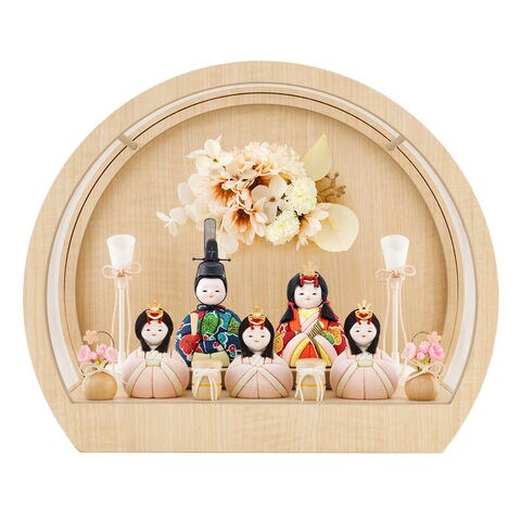 雛人形 ケース飾り コンパクト おしゃれ 今どき 雛 丸型 最新 木目込み ぷりふあ 月ノ時 Sサイズ 五人飾り 花飾り 【小豆・あさ 花飾り付属】 ひな人形 モダン インテリア お雛様 おひなさま